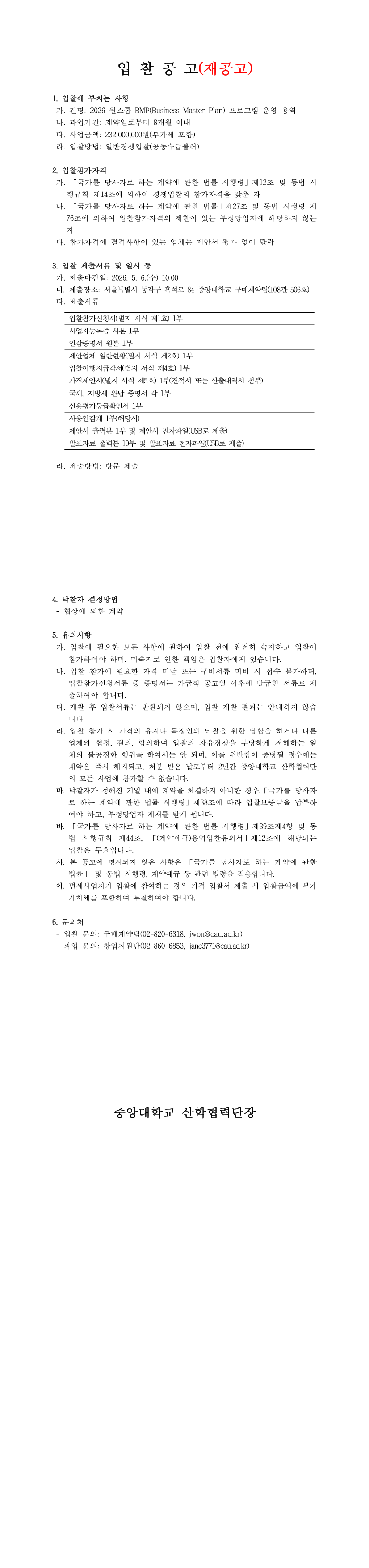 2026 원스톱 BMP(Business Master Plan) 프로그램 운영 용역 |