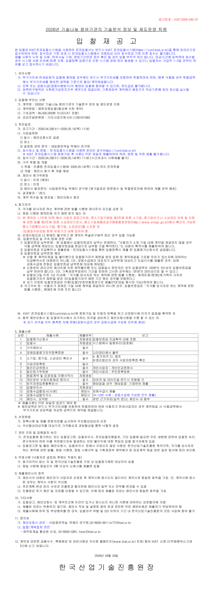 2026년 기술나눔 참여기관의 기술분석 정보 및 제도운영 지원 |