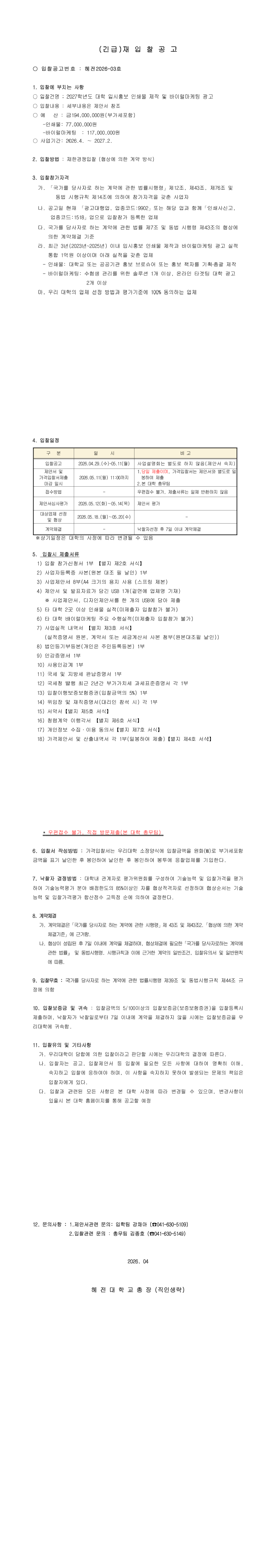 2027학년도 대학 입시홍보 인쇄물 제작 및 바이럴마케팅 광고 재입찰(긴급) |