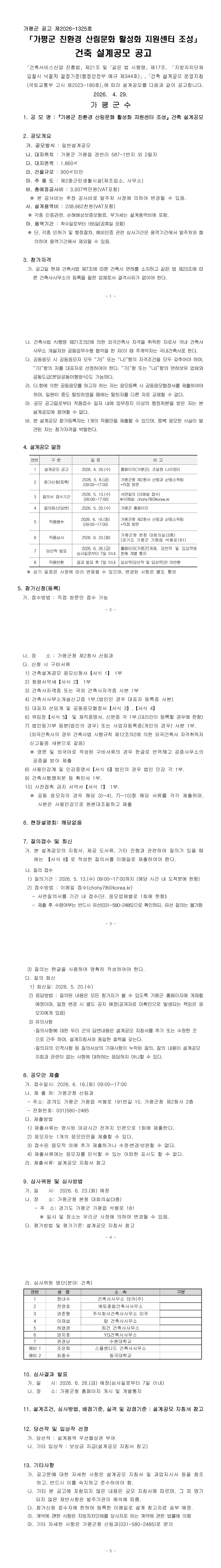 『가평군 친환경 산림문화 활성화 지원센터 조성』건축 설계공모 |