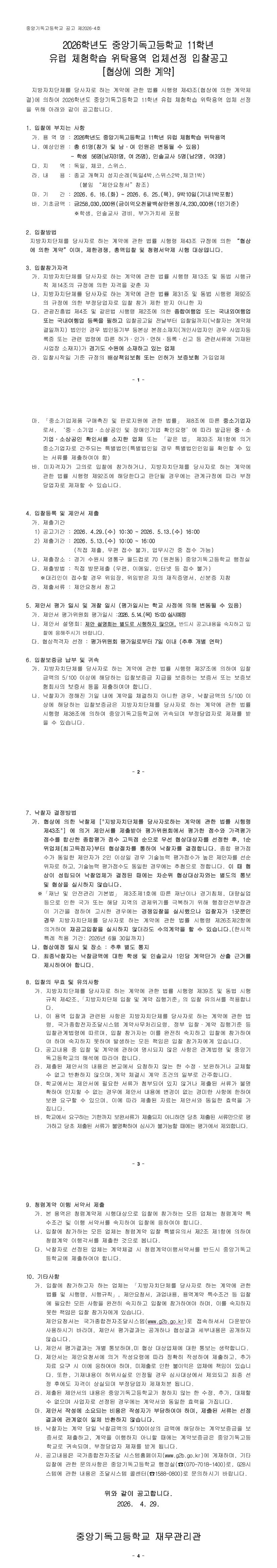 2026학년도 중앙기독고등학교 11학년 유럽 체험학습 위탁용역 업체선정 입찰공고 |