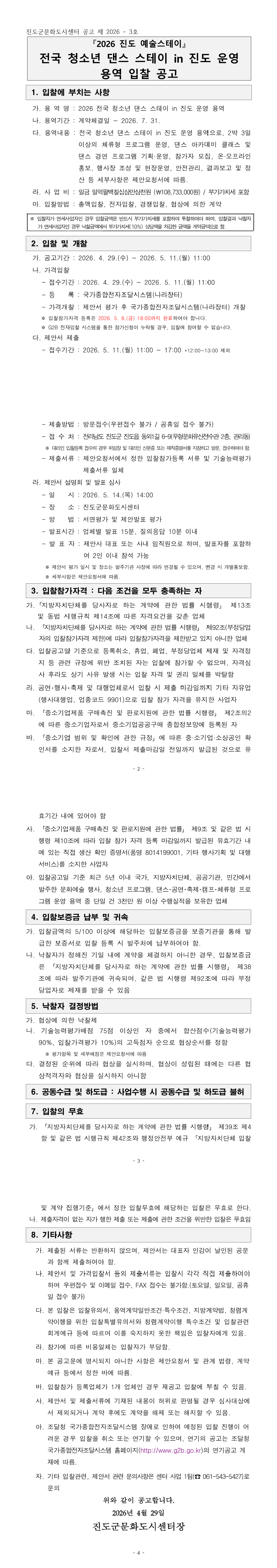 2026 전국 청소년 댄스 스테이 in 진도 운영 용역 입찰 공고 |