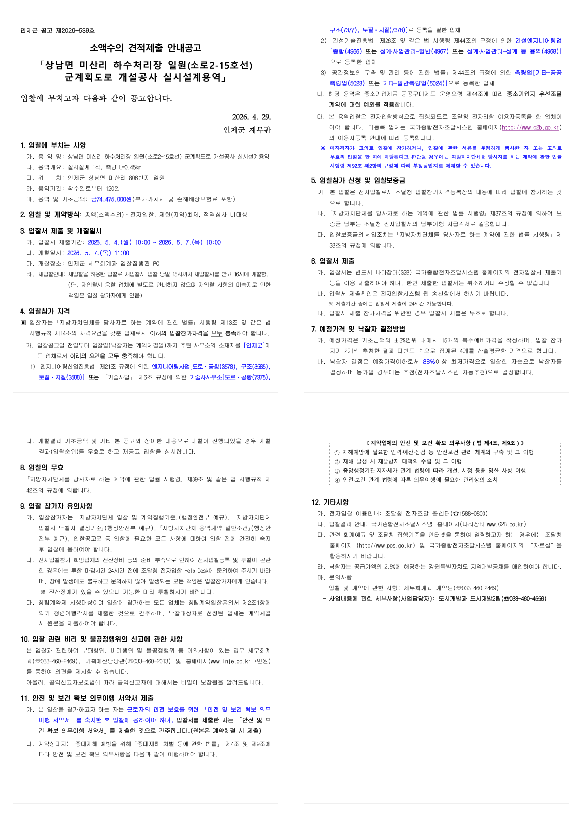 상남면 미산리 하수처리장 일원(소로2-15호선) 군계획도로 개설공사 실시설계용역 |