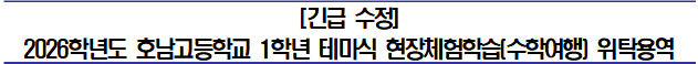 ◦ 2026학년도 호남고등학교 1학년 테마식 현장체험학습(수학여행) 위탁용역 입찰공고