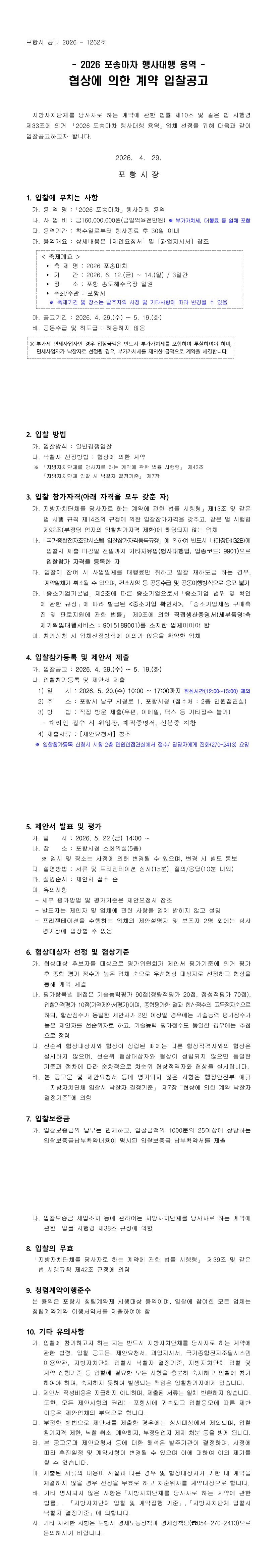 2026 포송마차 행사대행 용역 |