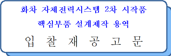 1. 입 찰 명 : 화차 자체전력시스템 2차 시작품 핵심부품 설계제작 용역