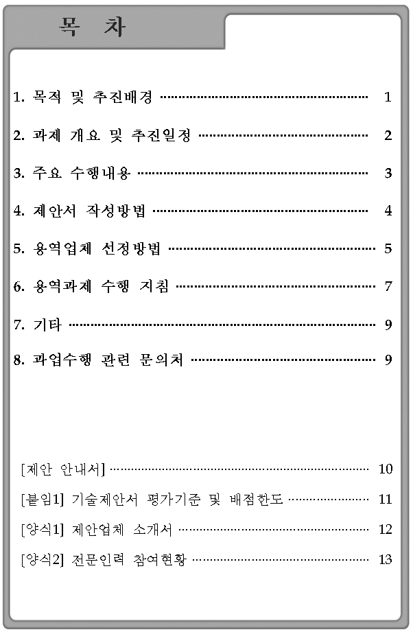 ○ 목차별 페이지수는 융통성이 있으며, 목차의 통합·세분화도 가능