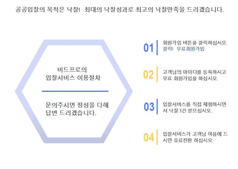 처음 방문하시는 고객님을 위해 비드프로의 입찰서비스 이용절차를 안내드립니다.