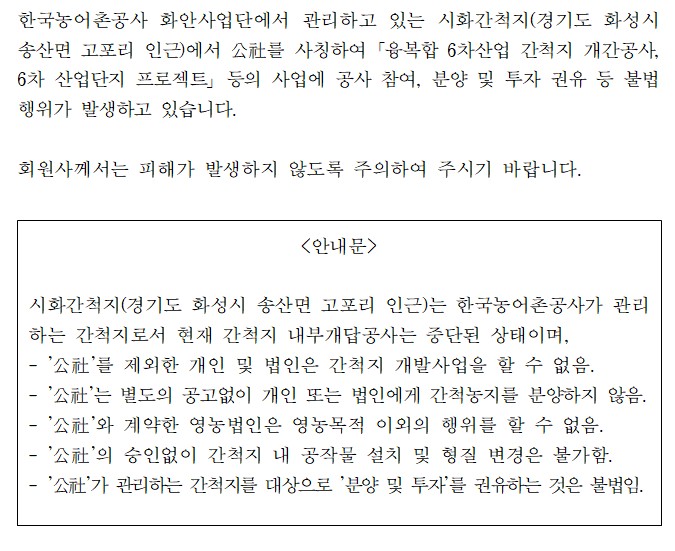 시화간척지 불법행위 피해방지 안내