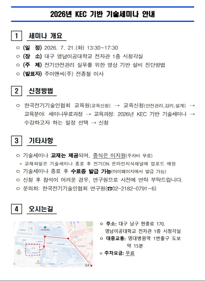 2026년 KEC 기반 기술세미나 개최 안내(대구)