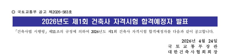 2026년도 제1회 건축사 자격시험 합격예정자 발표