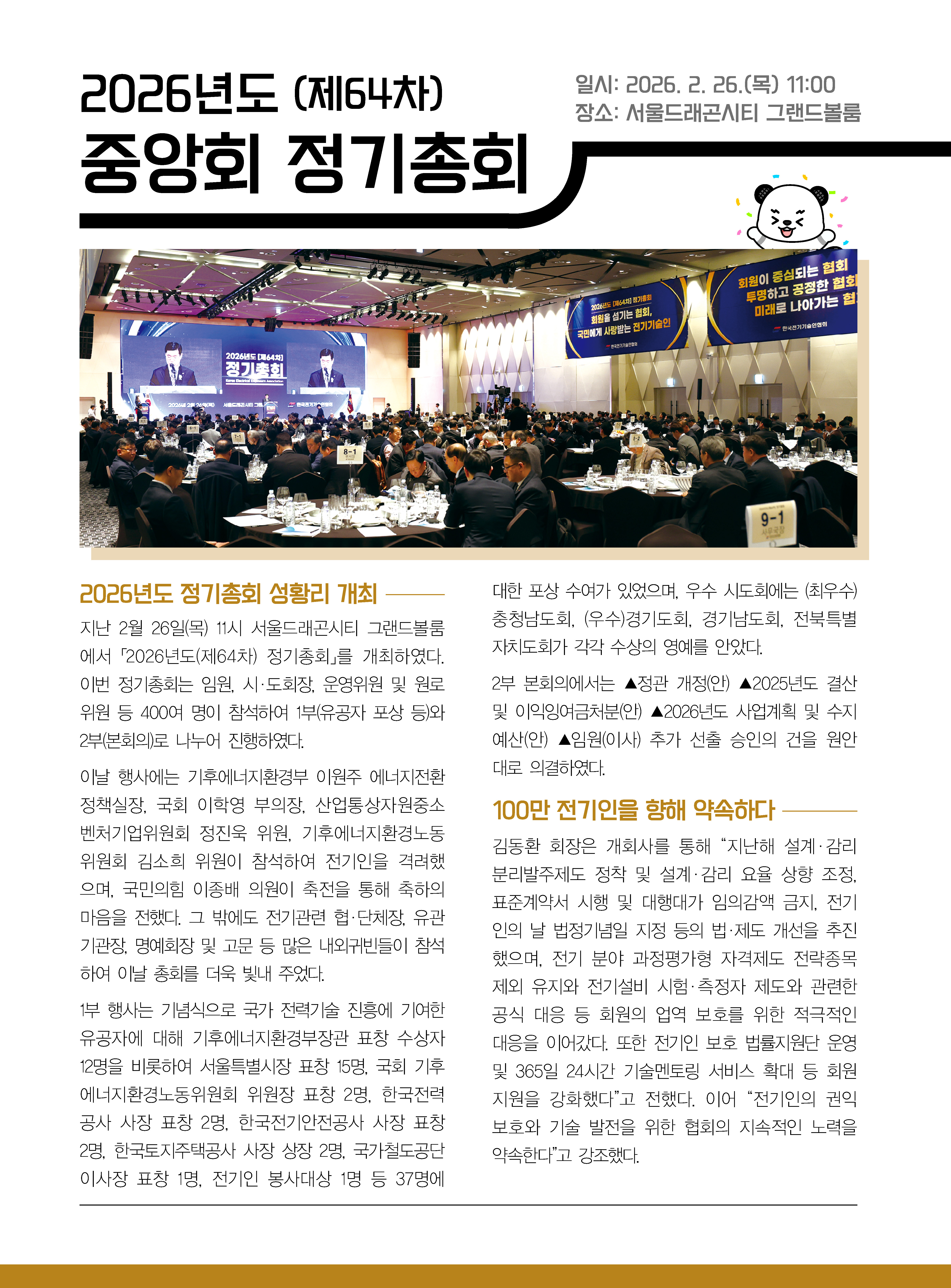 2026년도(제64차) 중앙회 정기총회 개최 결과