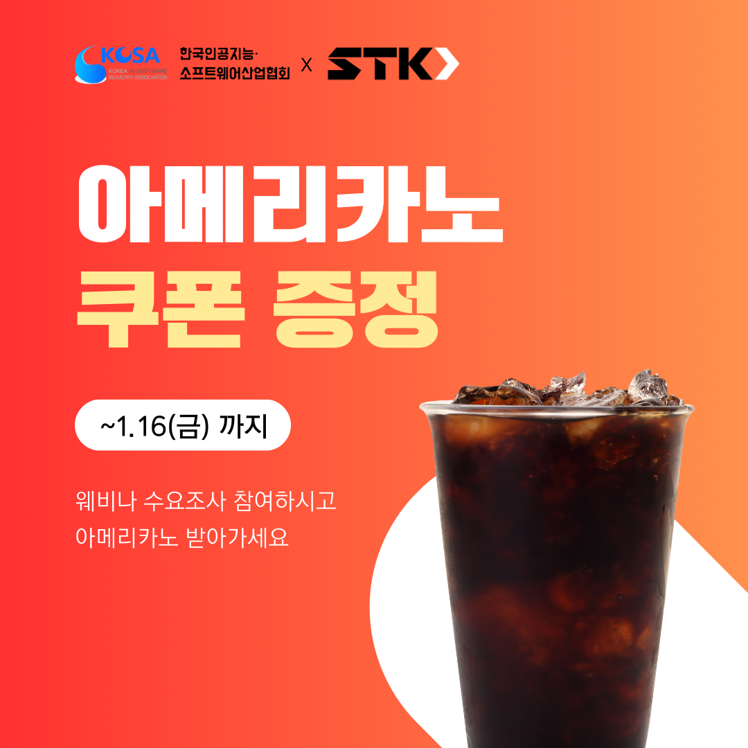[KOSA x STK] AI 기업 대상 웨비나 수요조사 (아메리카노 기프티콘 증정)